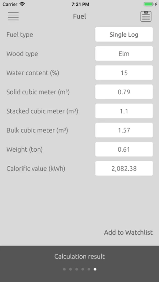 With the optional Watchlist, calculation results can be stored independently for each fuel type and can shared as PDF and CSV.