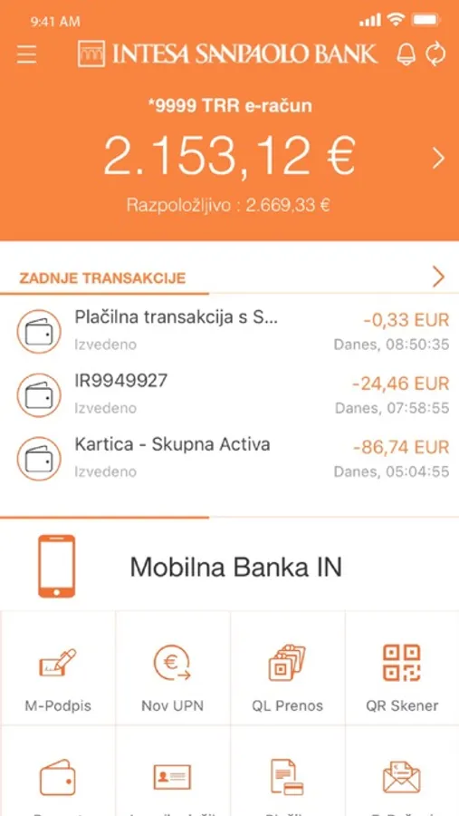 Banka IN Mobile is intended for Intesa Sanpaolo Bank clients, with the following services at their disposal: