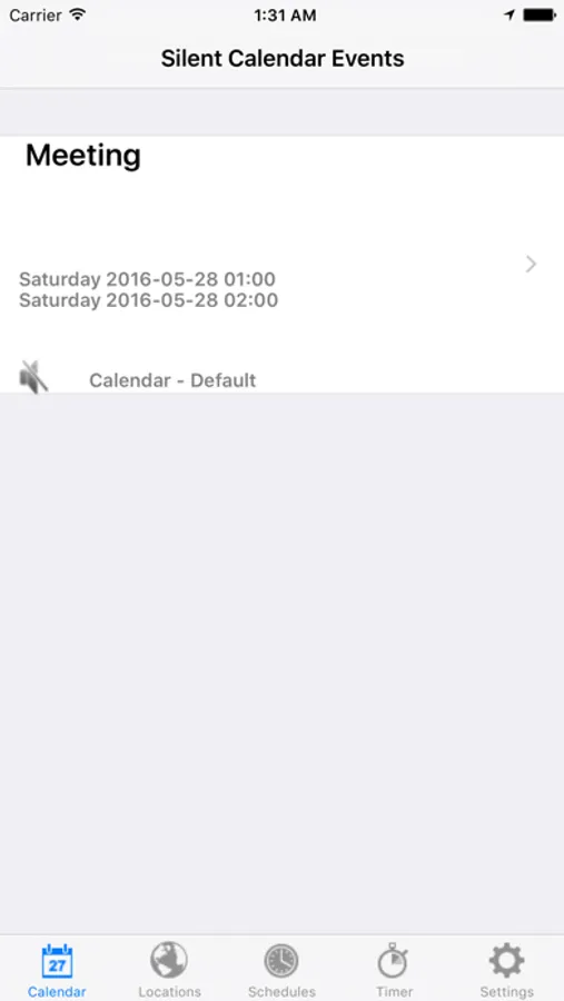 Calendar Tab – This tab shows you the next meeting that AutoSilent will automatically mute your iDevice