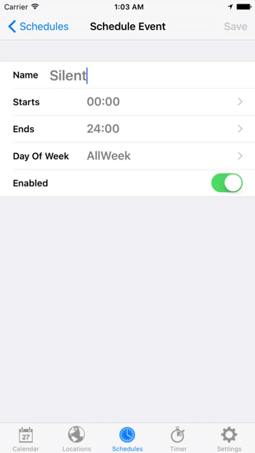 In the first tab the next silent event that it finds in your iPhone calendars. This tab is not intended to be used to add or modify events. To add new event just open your Calendar application and add/modify your event. AutoSilent will automatically synchronize with your calendars.
