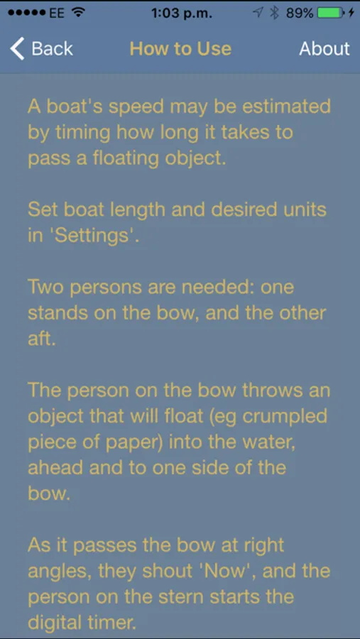 When the object passes the stern at right angles, the 'stop timing' button is tapped.