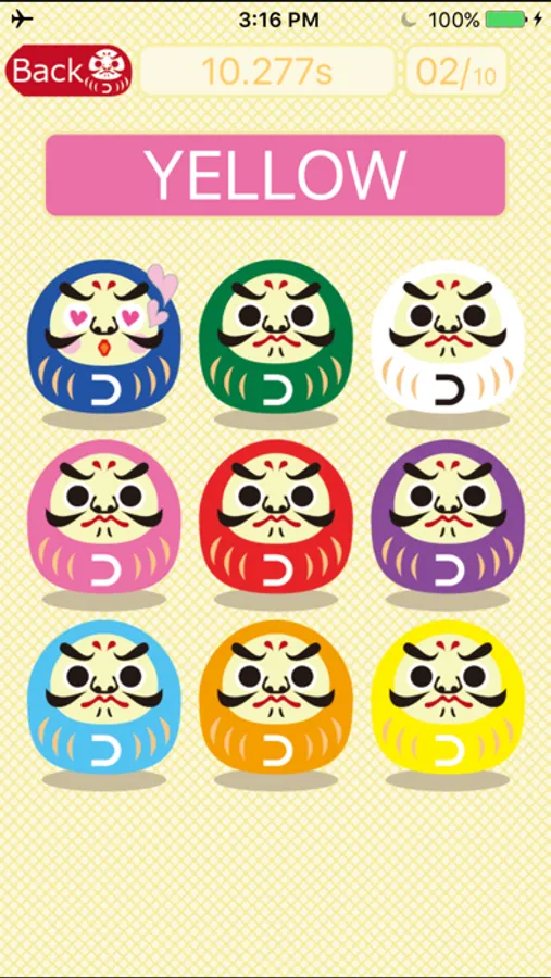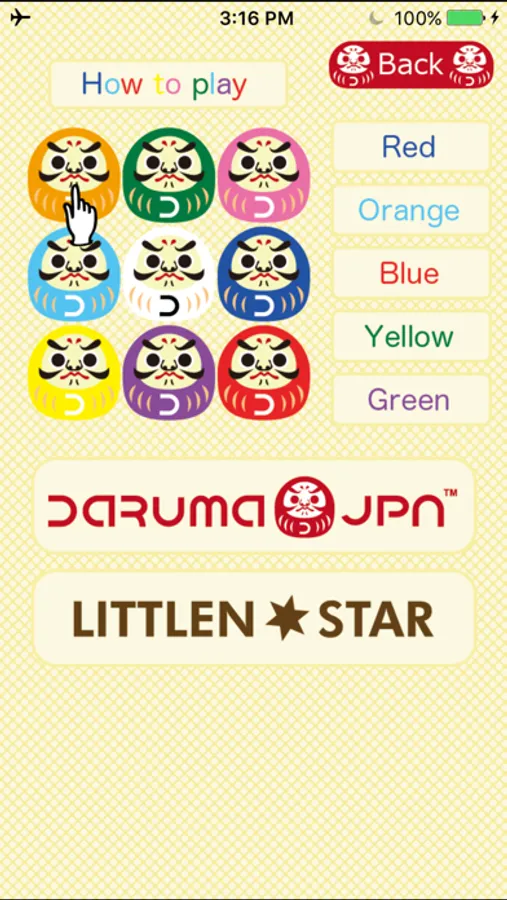 Tap the "Blue Daruma" if question is Blue.