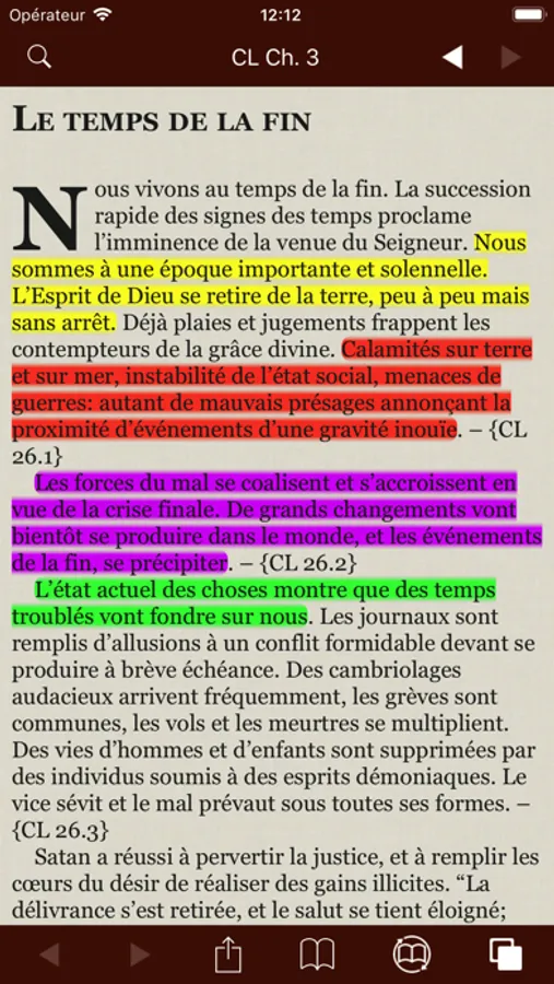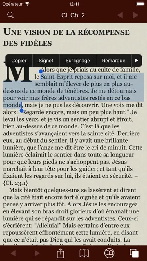 Ajoutez des signets à n'importe quel verset de la Bible ou paragraphe de EGW