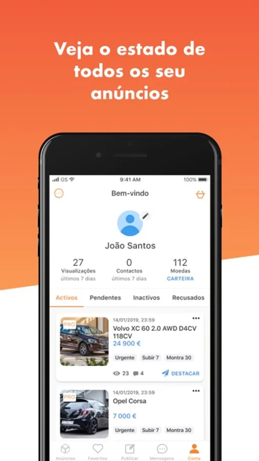 • Gestão dos seus anúncios: editar, renovar ou apagar;