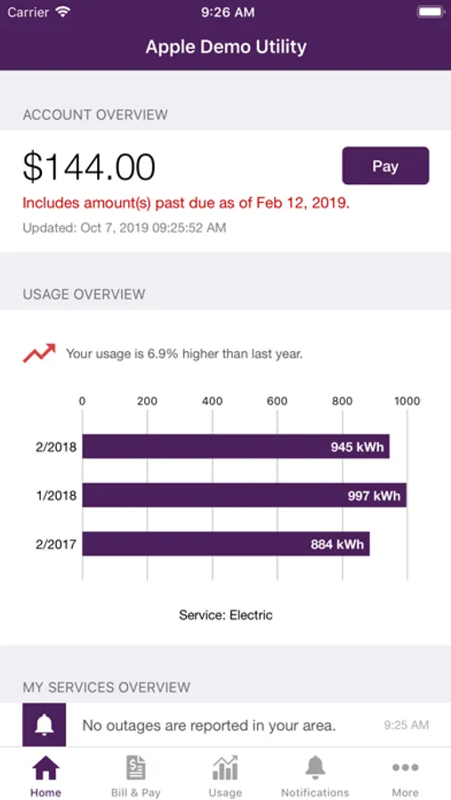 Quickly view your current account balance and due date, manage recurring payments and modify payment methods. You can also view bill history including PDF versions of paper bills directly on your mobile device. Make a payment now or schedule it for a future date.