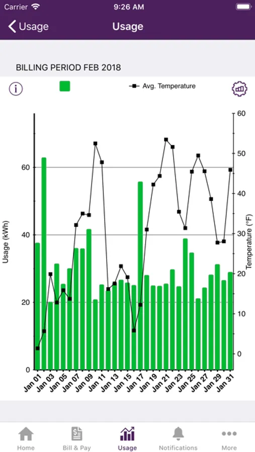 View energy usage graphs to identify high usage trends. Navigate graphs quickly using an intuitive gesture based interface.