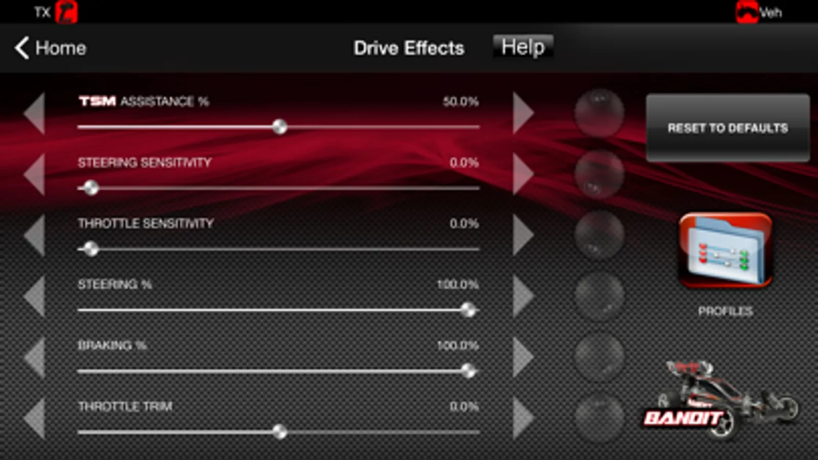Traxxas Link makes it easy to learn, understand, and access the powerful tuning options built into every Traxxas TQi radio system. Control your Drive Effect settings such as steering and throttle sensitivity, steering percentage, braking strength, and throttle trim by simply touching and dragging the sliders on the screen or enabling the Multi-Function knob on the transmitter. You can also adjust Traxxas Stability Management in Drive Effects to suit your skill and driving style. With Traxxas Link, everything takes place live, on-the-fly, giving you instant feedback on the changes you are making. Once you’ve created the perfect control settings for your model, save them as a profile that you can restore later, use on another model, or share with friends. If the track conditions change, simply re-tune your Drive Effects and save them as new profile.