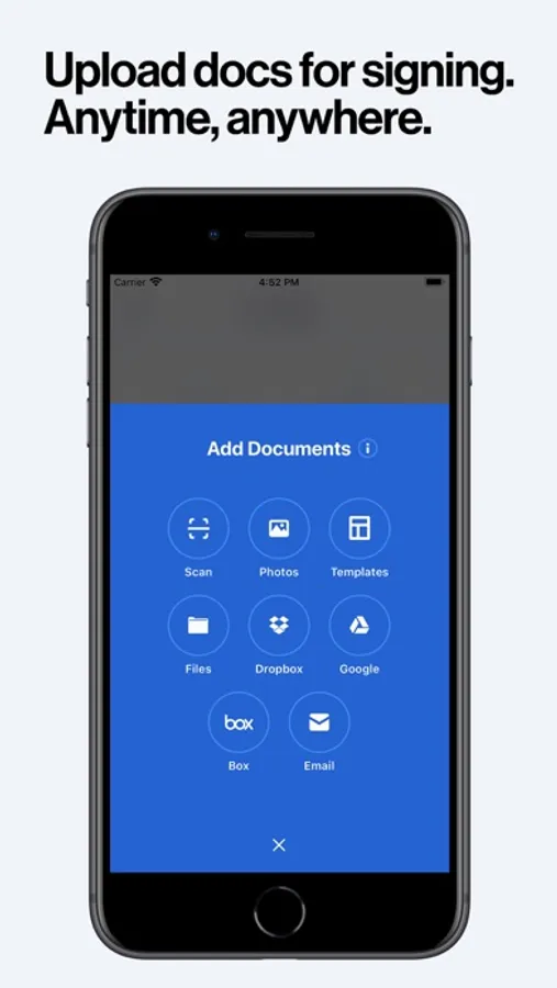 • Step 2: Upload documents easily via email, Google Drive, DropBox, Box, Evernote, Salesforce, or photo scanning.