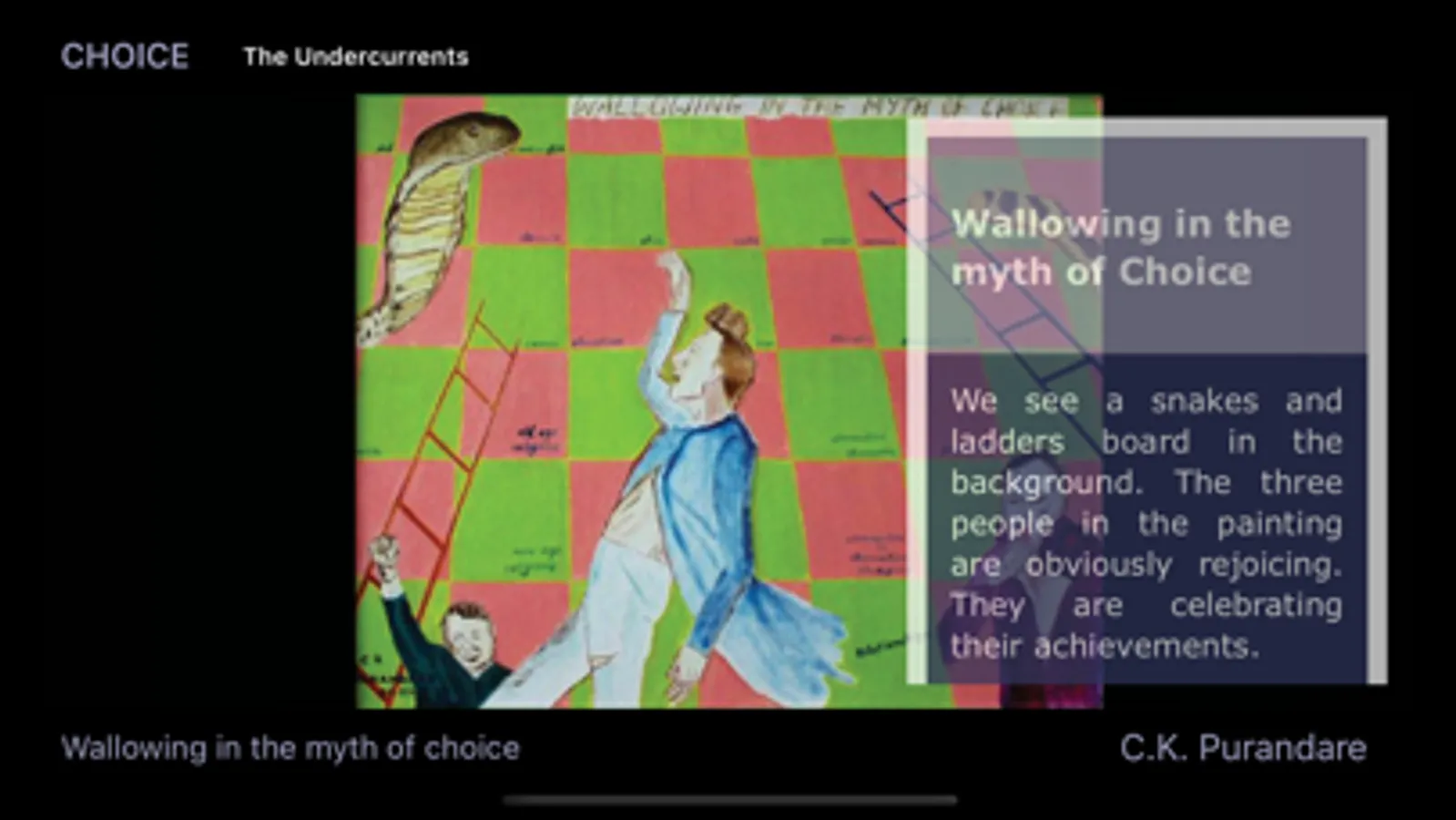 The paintings you are about to see are by C K Purandare, a self-taught Indian artist based in the UK. These paintings are not decorative. They try to depict the real world around us.
