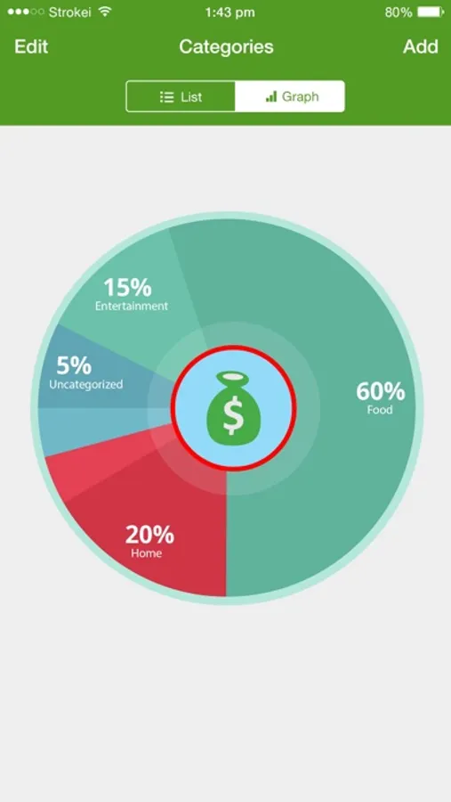 - Categorize your transactions. By visiting the 'Category' page, you will be able to see the amount and percentage of money you have spent in each category. (You are free to add any category that is not already part of the app by default)