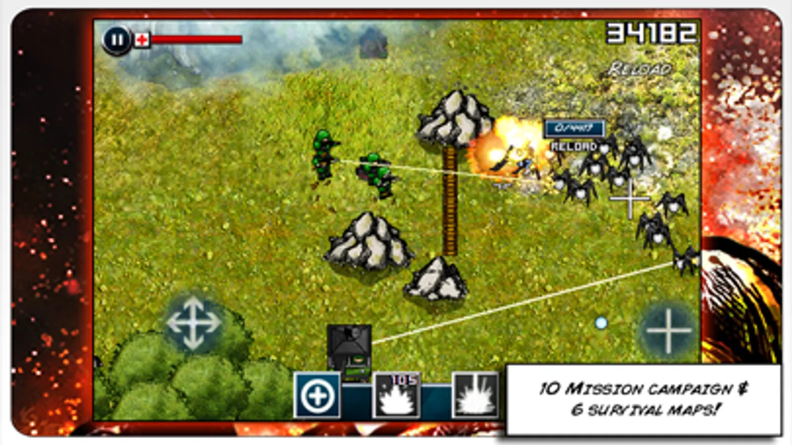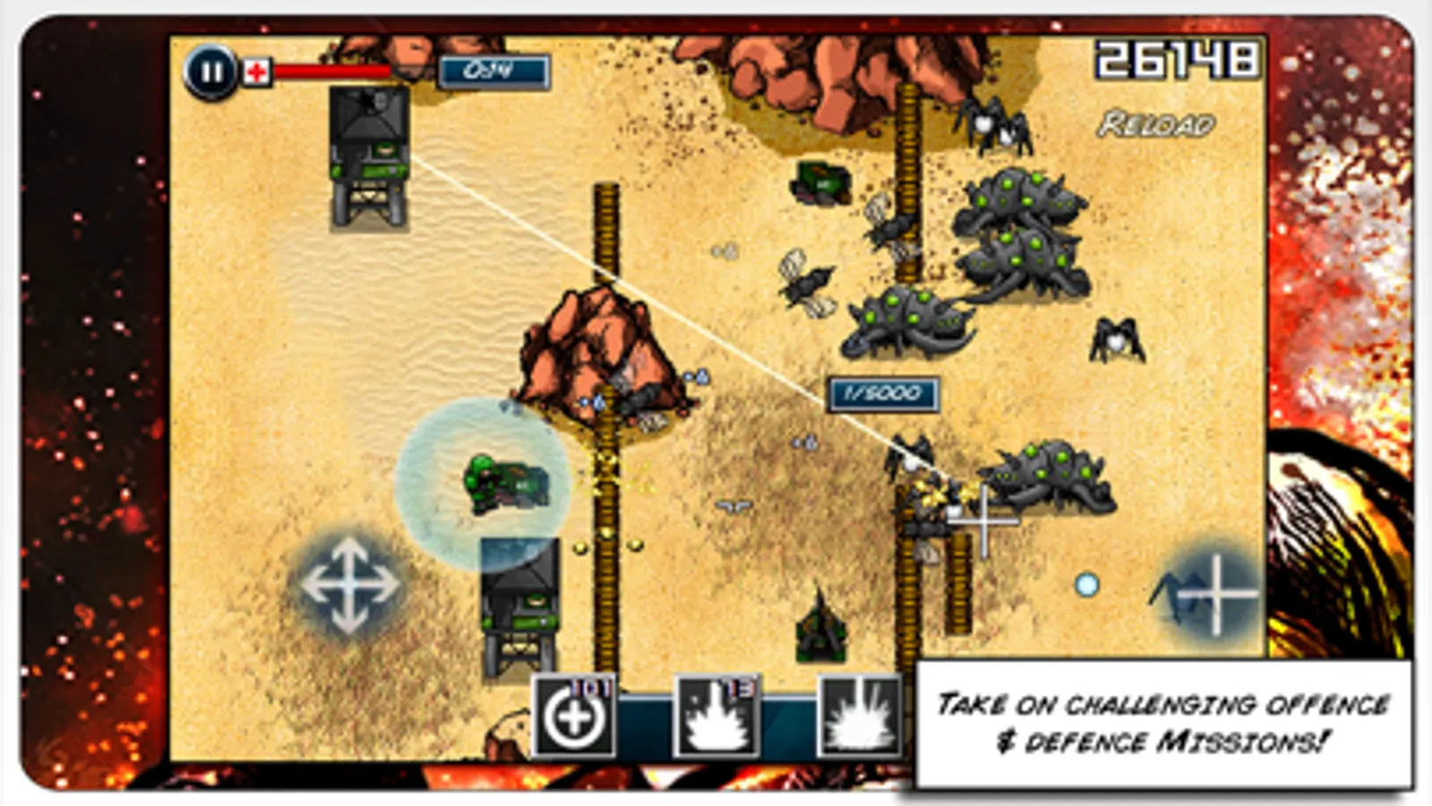 Play through the 10 mission campaign, with beautifully illustrated graphic novel style story panels. Missions range from offence to defence missions- upon which you can build a base to stop the alien horde.