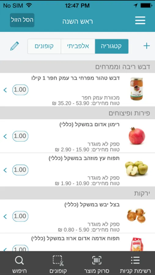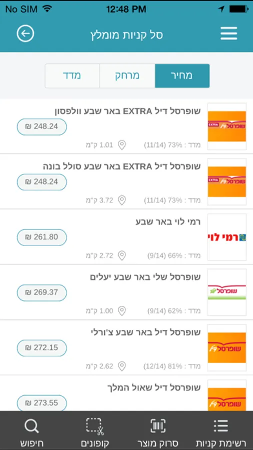 •קבלת המלצה על הסל הזול עבור רשימת הקניות באזור שלך.