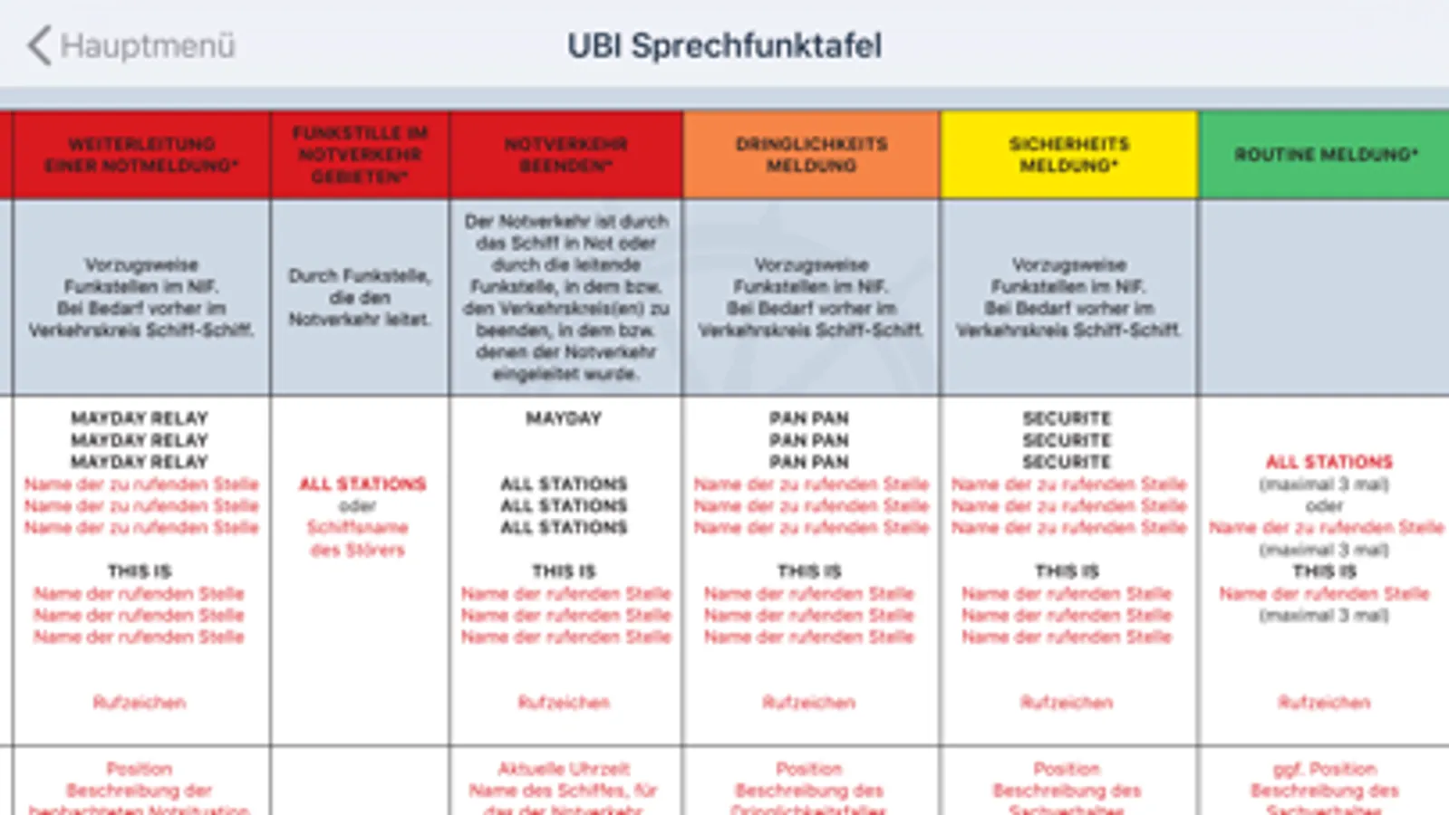 Weiterhin sind die Seefunktexte, die Funktafeln für UBI/SRC und das Internationale Buchstabieralphabet enthalten.