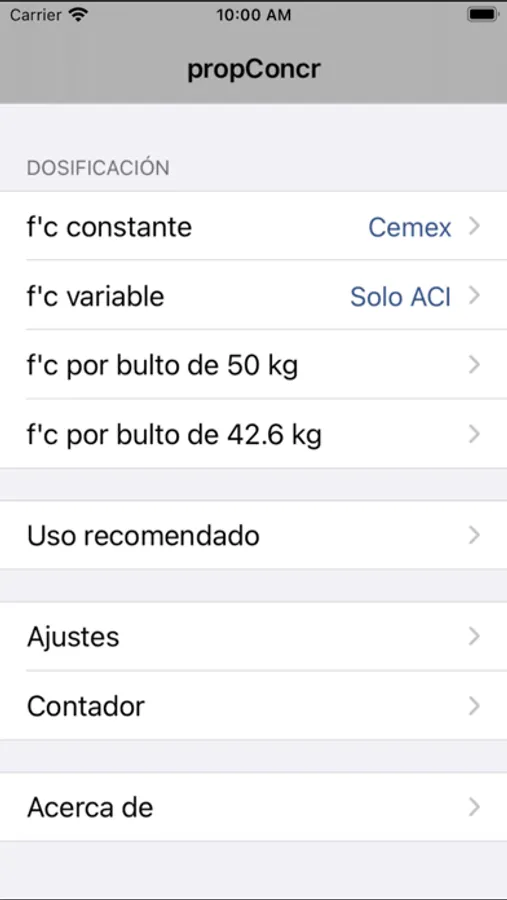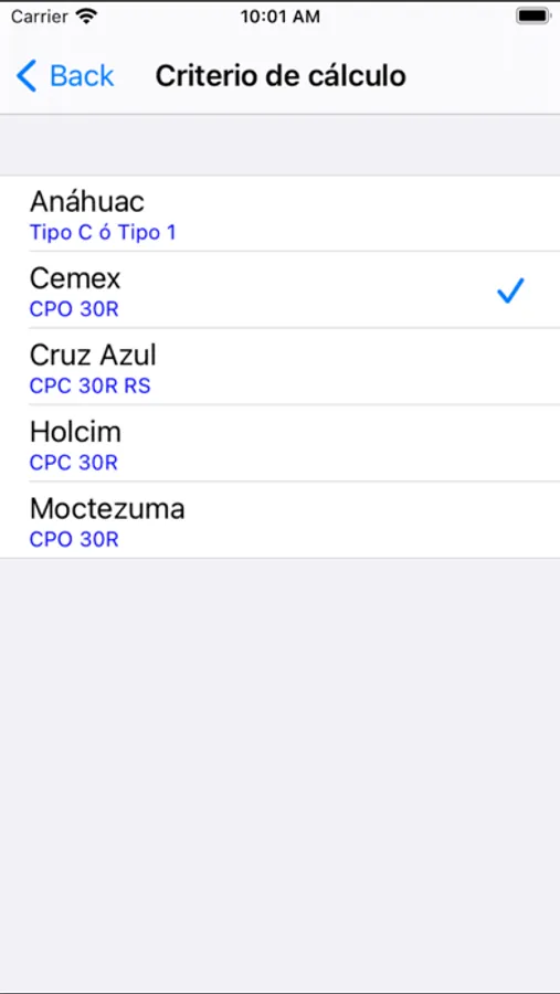 Selección del criterio de cálculo de acuerdo al ACI o al fabricante de cemento Anáhuac, Cemex, Cruz Azul, Holcim.