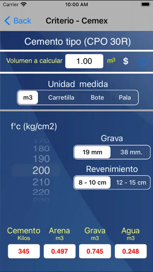 Por su interfaz dinámica, se puede determinar de manera exacta la cantidad de cemento, arena, grava y agua que se requiere para la fabricación del concreto con la resistencia seleccionada para el volumen proporcionado.