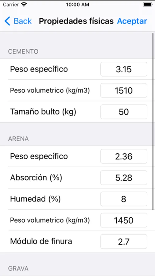 Toma en cuenta las propiedades físicas de los materiales para la dosificación.