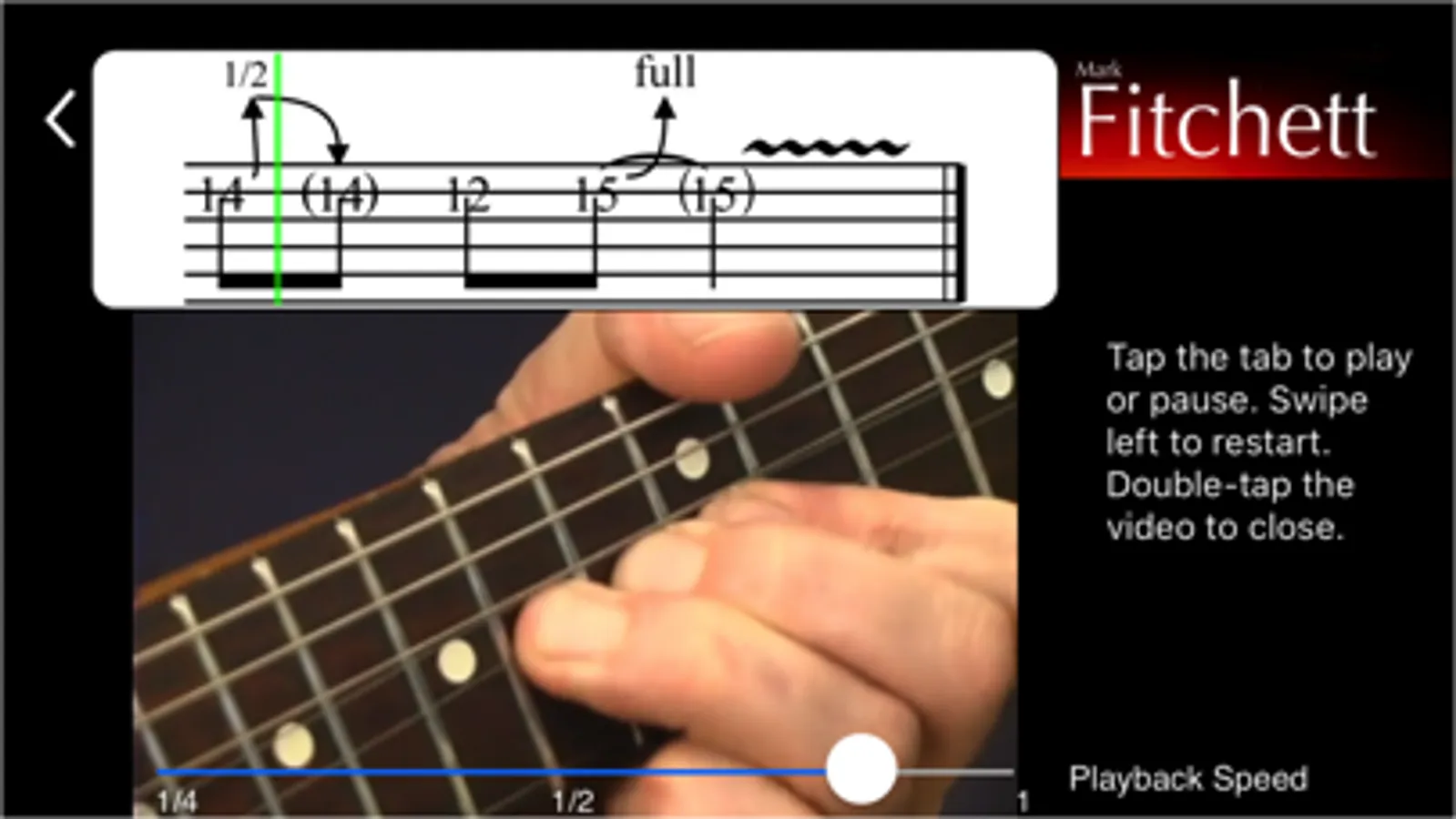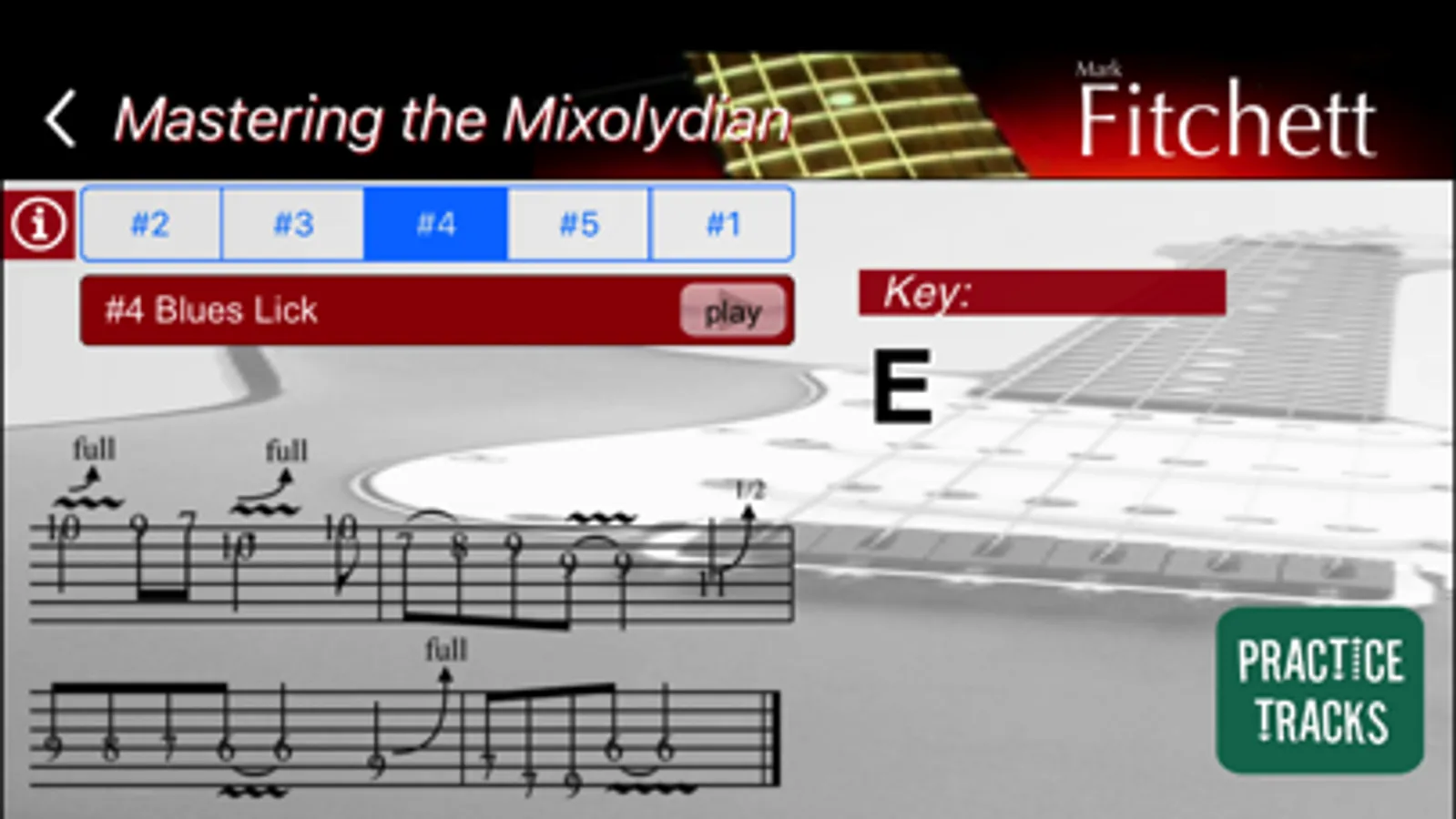 + Some lessons are taught in ALL KEYS OVER THE ENTIRE FRETBOARD, automatically adjusting the tablature and pitch of the audio (note that video is generally available only in one key though)
