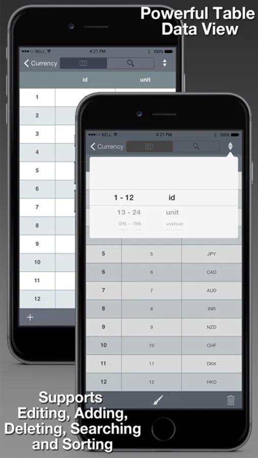 9. Powerful Table Data View. Supports Editing, Adding, Deleting, Searching and Sorting of data.