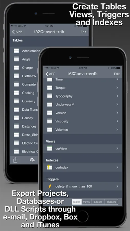 12. Export tables and views as CSV (via e-mail, your favourite storage providers and iTunes).