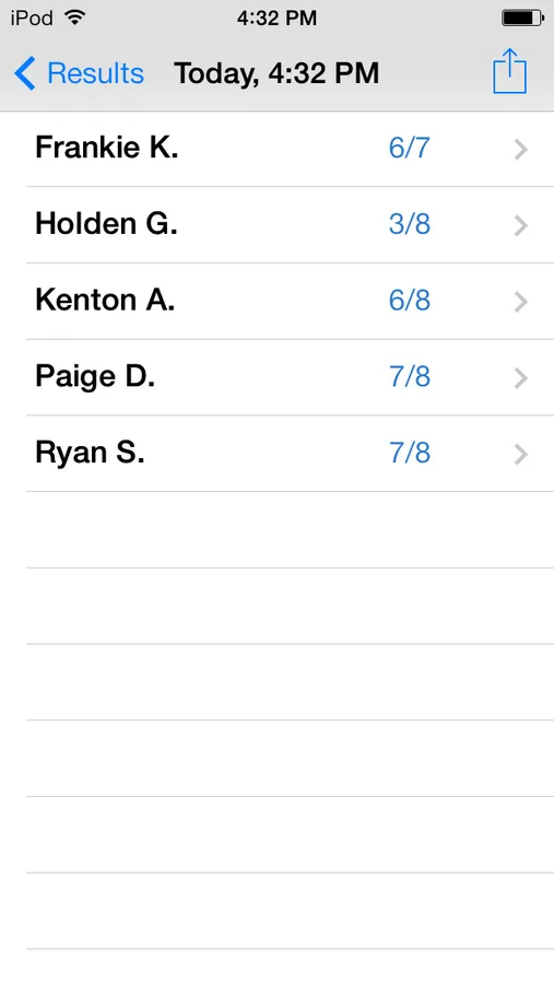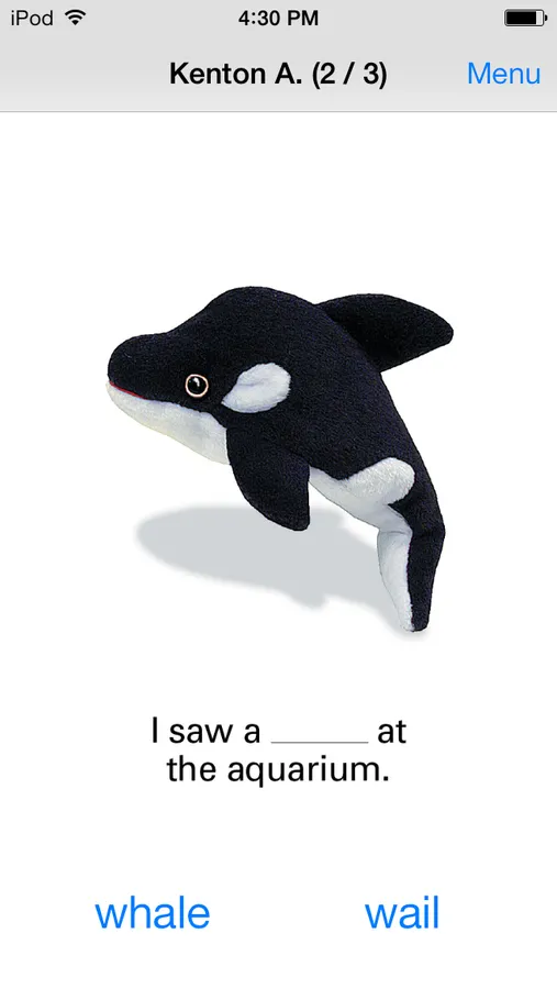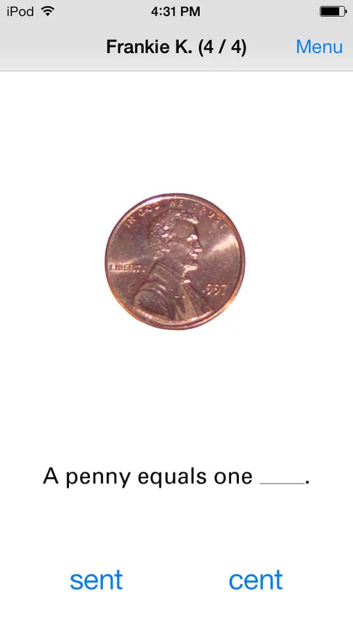 This App is simple to use — each student looks at an illustration and either reads the prompt or touches the screen to listen to the prompt and answer choices. The student then responds by touching his/her answer. Move to the next card by sliding the card currently on the display screen to the side. To move to the next player, tap the bar at the top of the screen and select a name. You can also advance cards and players automatically by selecting the Auto-Advance option in the Game Options menu. You can leave a game temporarily and return to it later by selecting Pause Game from the menu. To return to the game, select Continue Game from the main menu. When you finish, view the results in a graph, and print or email your data.