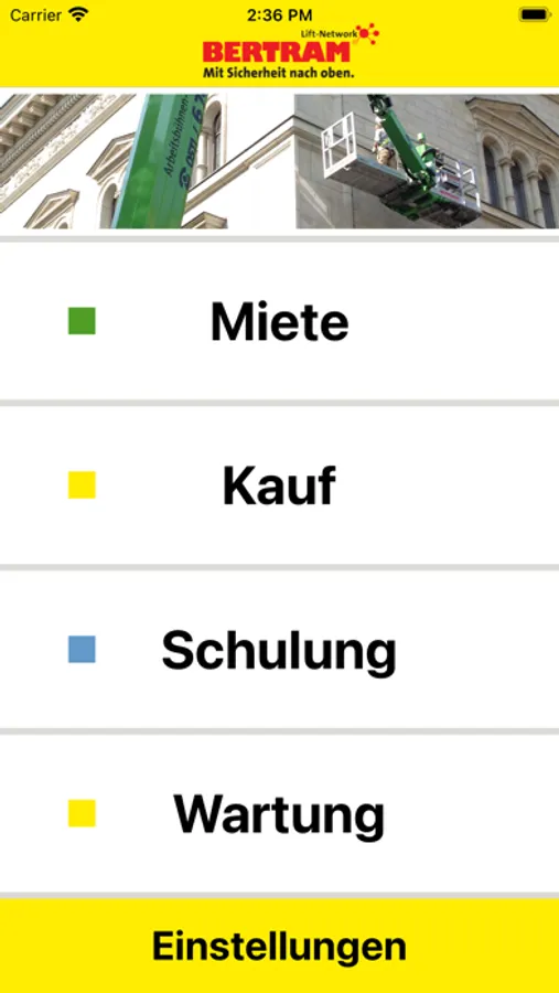 Bertram ist ein mittelständisches Familienunternehmen in 3. Generation, das in den Geschäftsfeldern Vermietung von Arbeitsbühnen, Herstellung und Handel von Fördertechnik und Arbeitsbühnen überregional tätig ist.