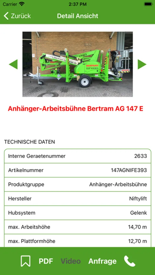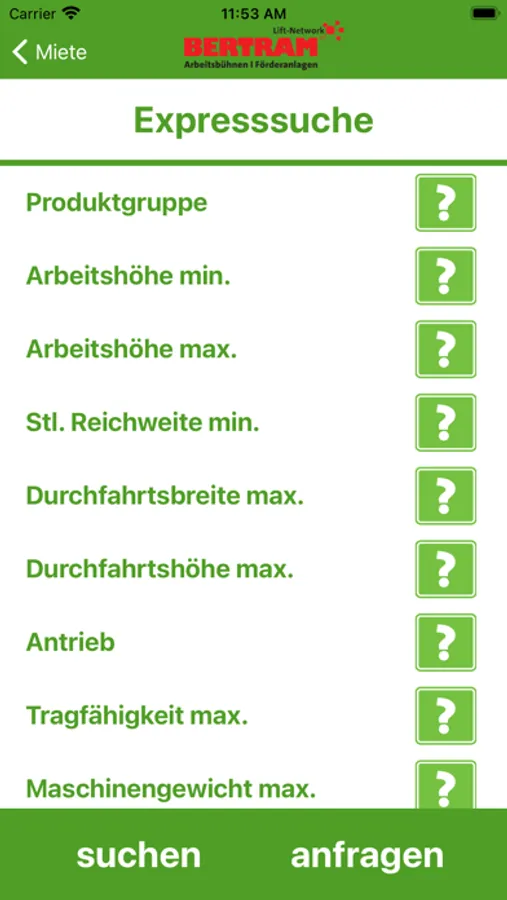 Mit der Bertram-App hat der Anwender vollen Zugriff und volle Suchfunktionalitäten auf die technischen Daten professioneller Zugangstechnik aus den Bereichen Arbeitsbühnen, Telestapler, Krane und Zubehör.