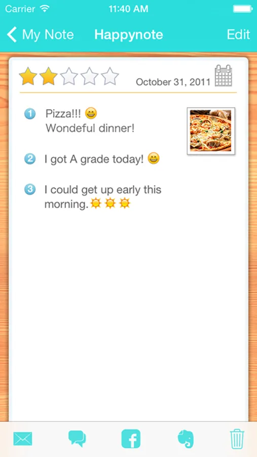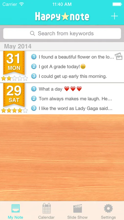 Happynote is the easy diary application. This allows you to write down 3 good things that happened each day. By writing down 3 good things everyday, this will help to build a positive self-image. Reinforce self esteem with a sense of happiness when you keep writing 3 good things for at least 1 week.