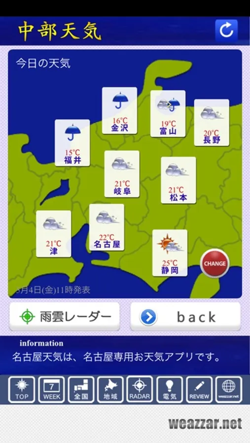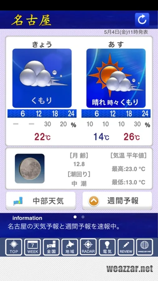 名古屋と豊橋の最新の天気予報(気象庁発表)を素早くチェック。