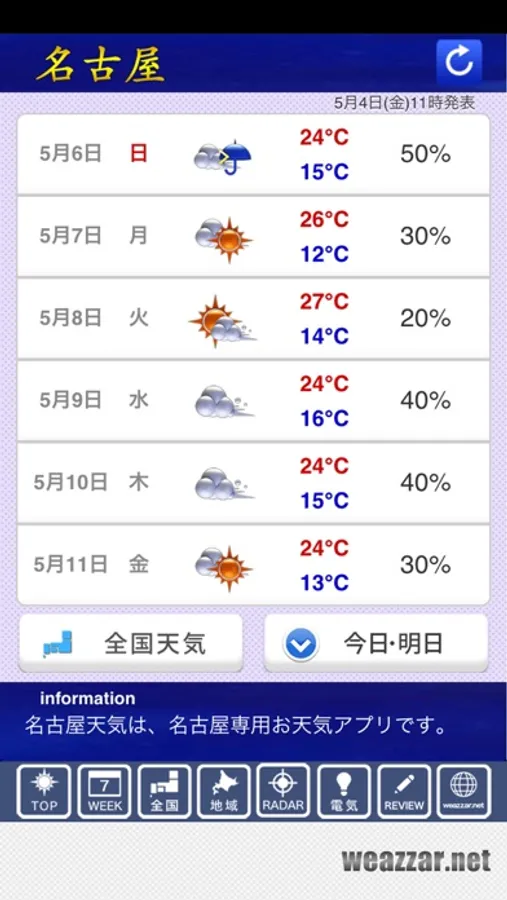 ・週間天気予報(毎日5時 11時 17時に気象庁が発表)