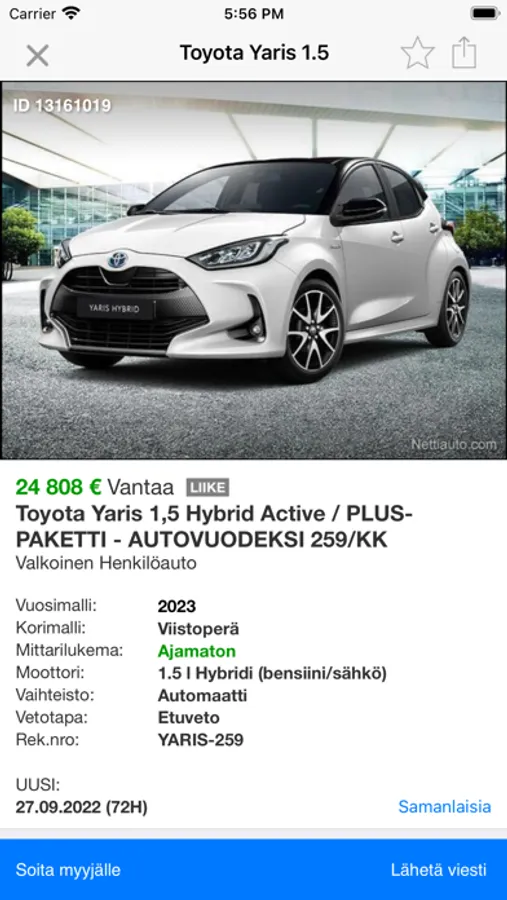 • Jätä ilmoituksia Nettiautoon sovelluksessa
