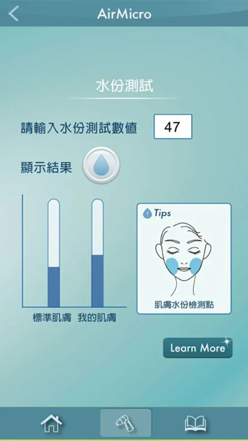 * 提供水分檢測功能及日常保濕資訊,全方位了解肌膚