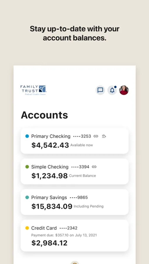 The app allows you to transfer money between your Family Trust accounts and other financial institutions, make loan payments, find branches and surcharge-free ATMs, and deposit checks.