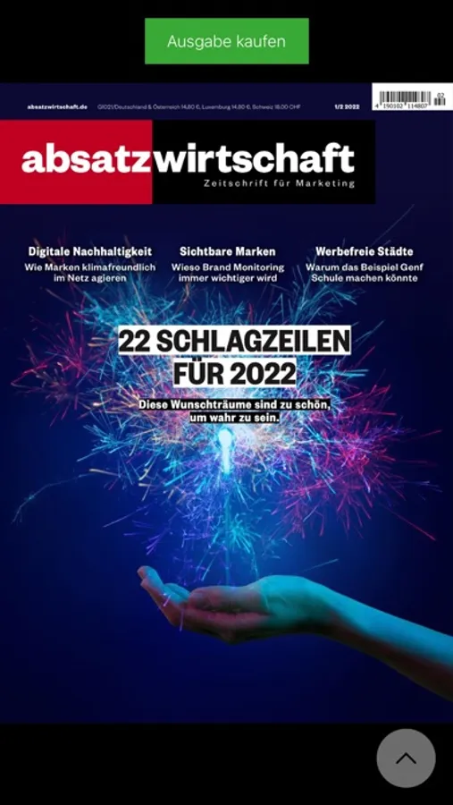 Mit der neuen absatzwirtschaft-App können Sie das auflagenstärkste Monatsmagazin für Marketing und Vertrieb im Original-Look der Printausgabe auf dem iPad lesen. Über den RSS-Feed erhalten Sie die aktuellen Schlagzeilen auf ihr iPad. Recherchiert und geschrieben für Marketing-Entscheider, deckt absatzwirtschaft alle Praxisfragen des modernen Marketings und Vertriebs ab und informiert über Trends, Best Practices, neue Methoden sowie die Entwicklung aufseiten der Medien und Marketing-Dienstleister.