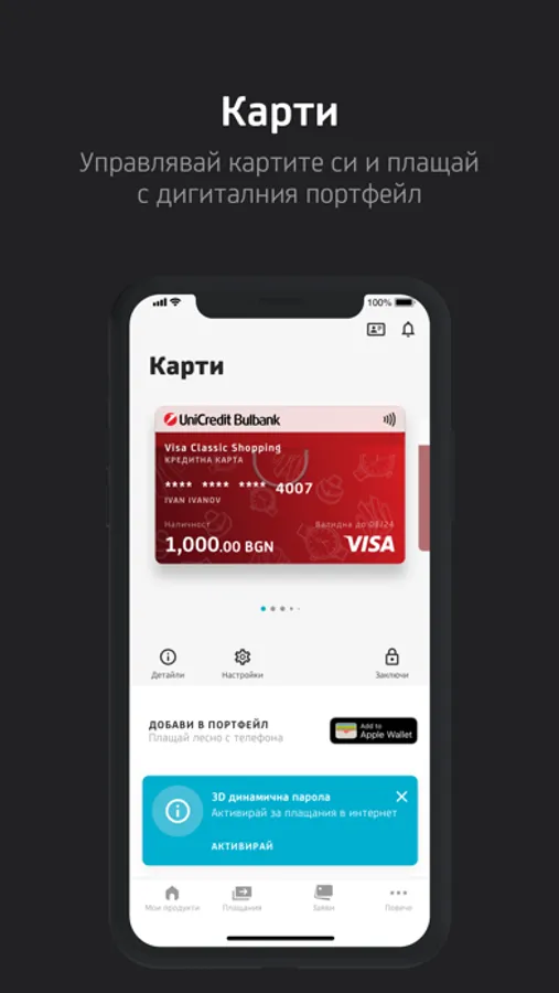 Use 3D dynamic password for secure internet payments. Finish your purchase by entering the password received in Bulbank Mobile.