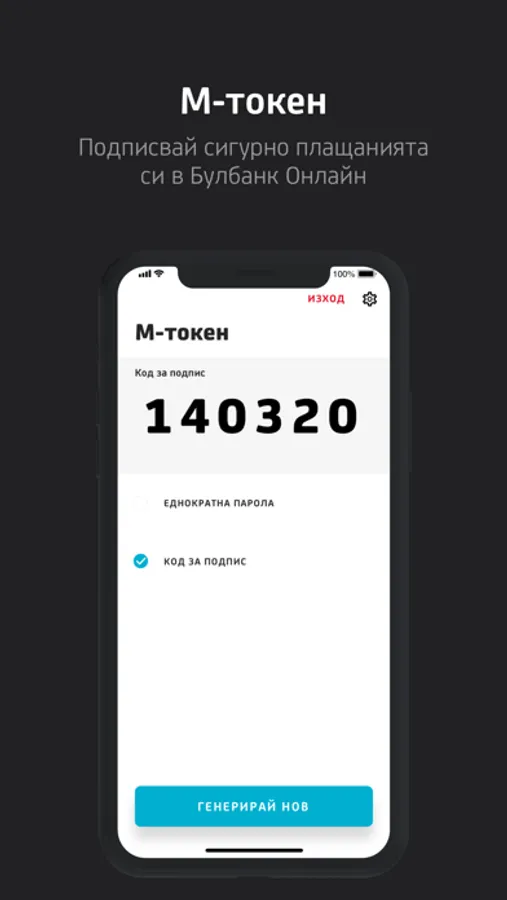 Use M-token for Bulbank Online login and confirm your payments with the generated sign code.