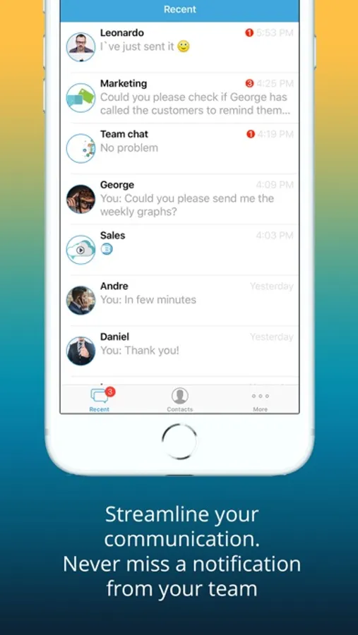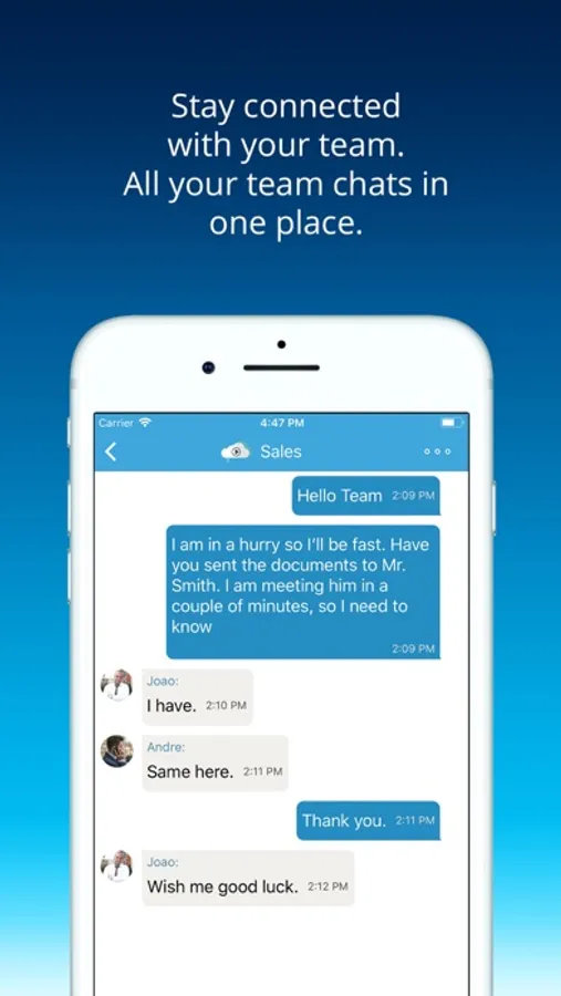 - Keep in touch with your team wherever you are with text chat and chat rooms