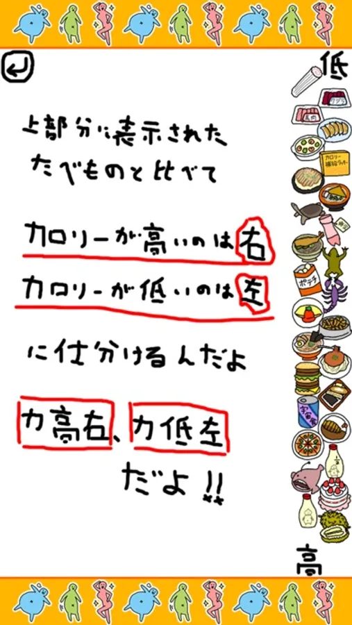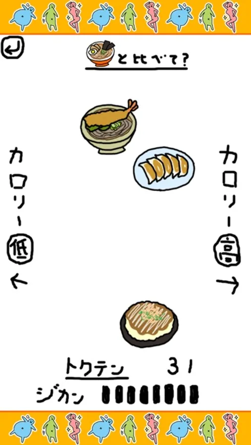 It is a game which measures a calorie and judges whether which is high as for a calorie, or it is low.