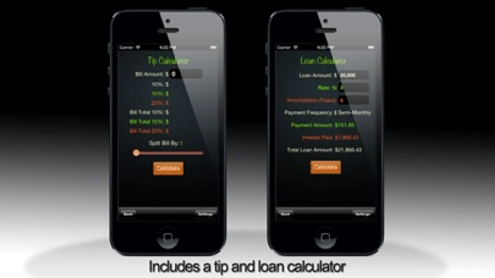 • The Tip Calculator gives 3 customizable tip rates, with a handy slider for splitting the bill