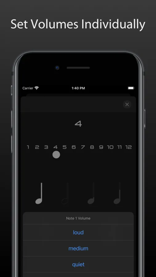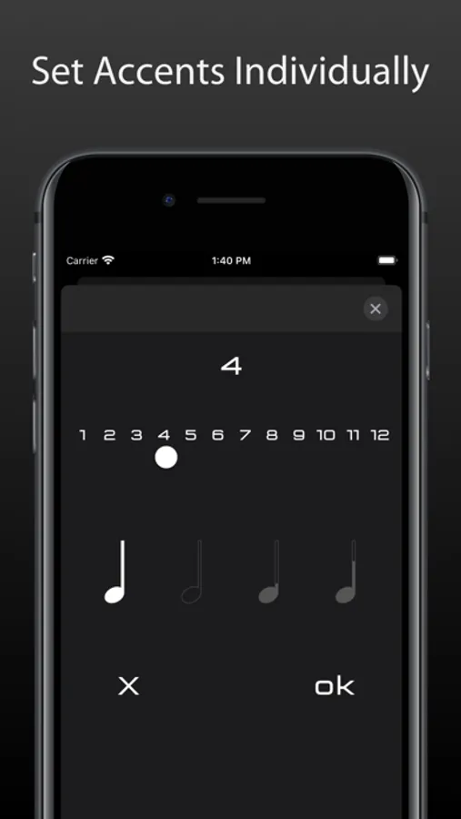 Choose a beat count from 1 up to 12 beats and free customizable accentuation.