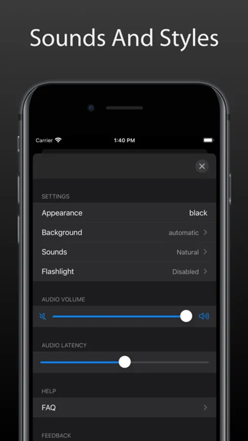 Customize Metronome Touch to your likes and needs. Choose between dark and light design as well as chosen professional metronome sounds.