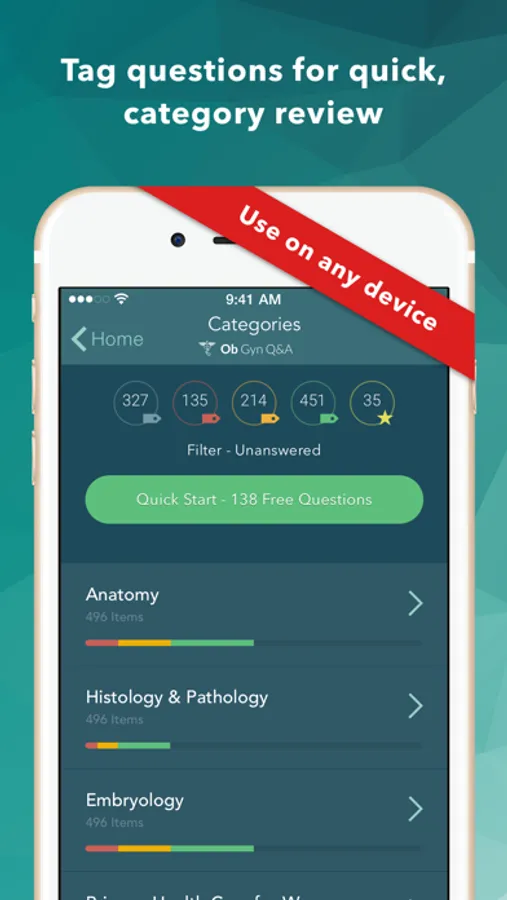 Test your overall knowledge by answering randomly generated questions from each category or target areas of weakness by focusing on a specific category.