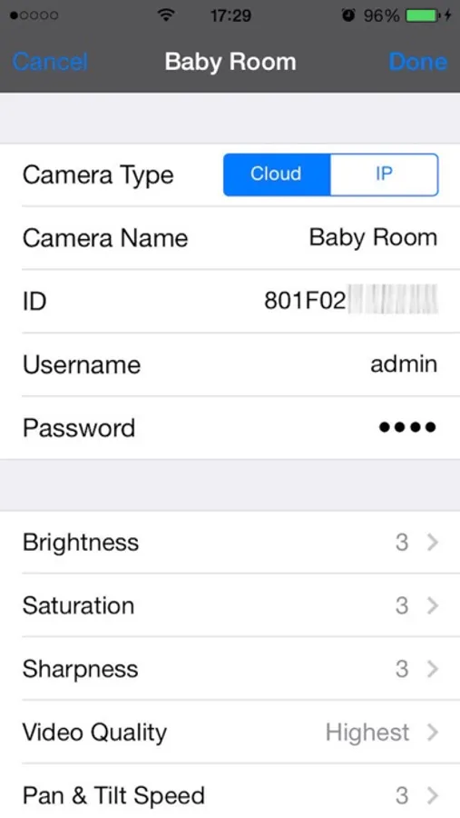 5. Adjust brightness, saturation, sharpness, video quality and pan & tilt speed* settings remotely