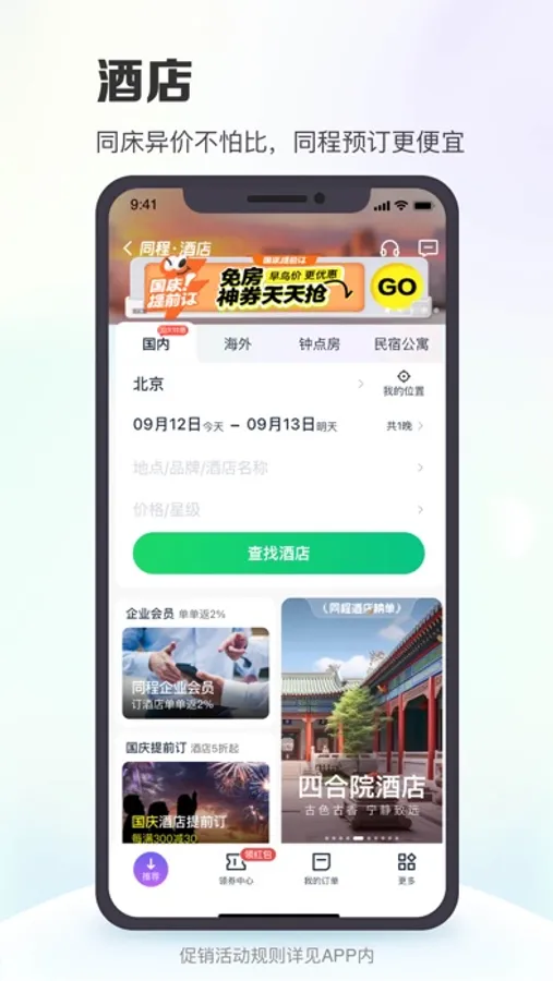3、酒店:百万酒店覆盖国内海外,钟点房/品牌连锁/民宿应有尽有,亲子/差旅/旅行面面具到。