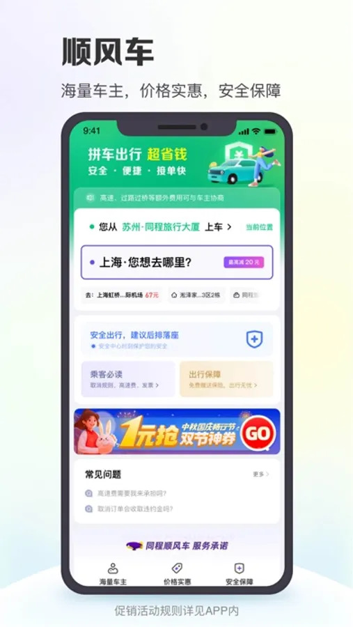 6、打车:一键呼叫全网打车平台,享受省心、便捷、快速、安全的出行体验,多重好礼助力极致优惠价格!