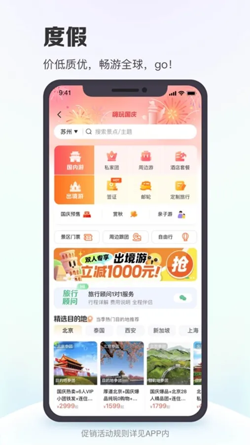 10、旅游:支持国内、国际各目的地旅游、签证产品预订;享特价福利、领大额红包、玩转天天抽奖。