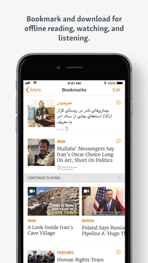 • Bookmark and download for offline reading, watching, and listening