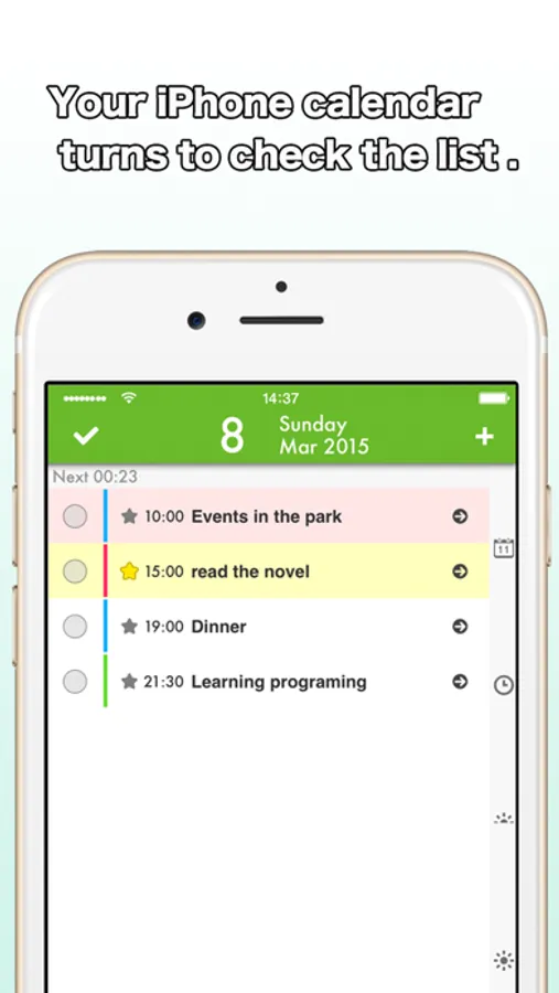 -When you finish events, you check them off. Once checked, it goes into the background.
