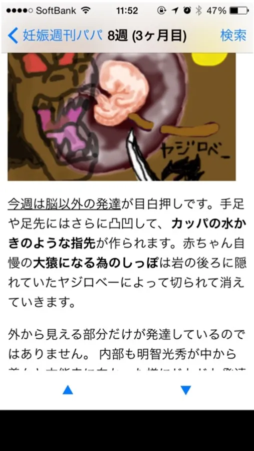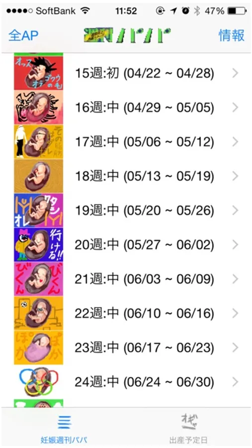 旦那は全く育児妊婦本も読まず、ネットで妊娠情報調べるわけでもなく、妊婦に関して完全無知、、つーかお前父親になる自覚あんの?っていうイライラが募った末、お父さんはいないことにする、と夫に宣告したぐらいストレスフルな毎日の中、神アプリを発見。