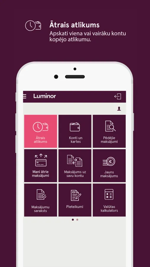 Try Luminor mobile application and enjoy the power of convenient, fast and easy online banking in the mobile phone! The most popular online banking functions and a whole variety of additional tools – all in one Luminor mobile application!