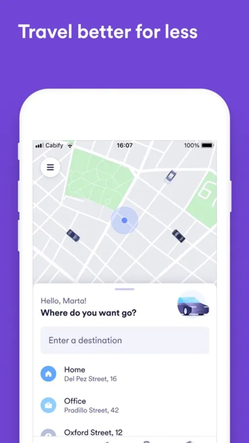 Discover Cabify, a transport app that lets you get around the city with private cars with a driver, with the highest quality of service and high safety standards. In a few minutes you’ll have a car with a driver or a taxi waiting to take you wherever you want.